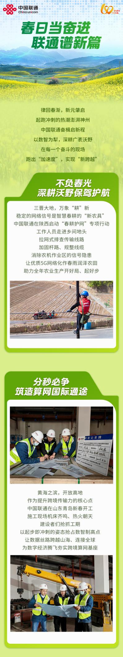 律回春渐,新元肇启,起跑冲刺的热潮澎湃神州,中国联通奋楫启新程,以数智为犁,深耕广袤沃野在每一个奋斗的现场,跑出“加速度”,实现“新跨越”。