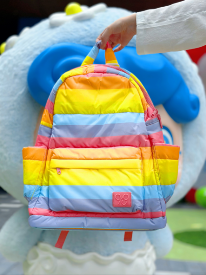 除了双肩包,CIPU彩虹包系列还拥有侧背包、托特包等多种款式,以适应不同场景下的出行需求。侧背包系列解锁了单肩、斜挎等多种背法,巧妙解放妈妈的双手;而小巧的XS号侧背包,不仅配有可调节的斜挎肩带,更贴心附赠同款花色的购物袋,将时尚与实用无缝衔接。包身内外均采用通过专业检测的防泼水面料,优异的耐脏防污性能,让妈妈们可以更从容地应对育儿过程中的小意外。同时,包体在装载物品后依然能保持挺括、不易塌陷,底部别出心裁的防盗袋设计,更是在细节处体现了对用户安全的周全守护。 从大容量、轻自重的基础需求,到多夹层、防泼水的功能进阶,再到可站立、底部防盗袋的细节关怀,CIPU彩虹包系列陪伴妈妈们在不同生活角色中自由切换,让每一位使用者在忙碌的育儿时光里,依然能保持那份属于自己的精致与从容。