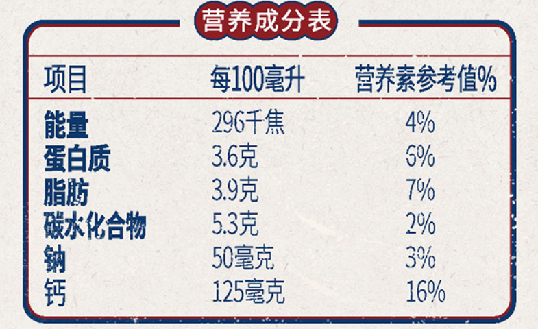 作为高温杀菌乳,产品每100毫升含3.6克蛋白质、3.9克脂肪、125毫克钙(钙营养素参考值达16%),能量296千焦,碳水化合物5.3克,钠50毫克。既保留生牛乳的天然营养,又通过工艺确保15天保质期内的新鲜度,满足家庭早餐、办公加餐、户外携带等多场景营养需求。