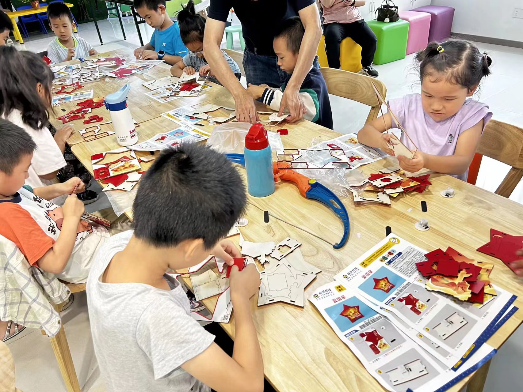 在国庆节来临之际,为弘扬爱国主义精神,加强对少年儿童的思想道德教育,同时关怀辖区困境儿童成长,9月27日,孝陵卫街道民服站与未保站联合举办了“星火不息·祖国在我心中”爱国教育主题活动。 本次活动内容丰富,寓教于乐,旨在通过沉浸式体验将爱国主义的种子深植于孩子们心中。活动伊始,受邀前来的孩子们在未保站工作人员的指导下,亲手制作“星星灯”。孩子们认真专注,将星星灯一点点组装成型。这不仅锻炼了他们的动手能力,更象征着革命精神如星火般代代相传、永不熄灭,寓意着祖国的未来光明璀璨。