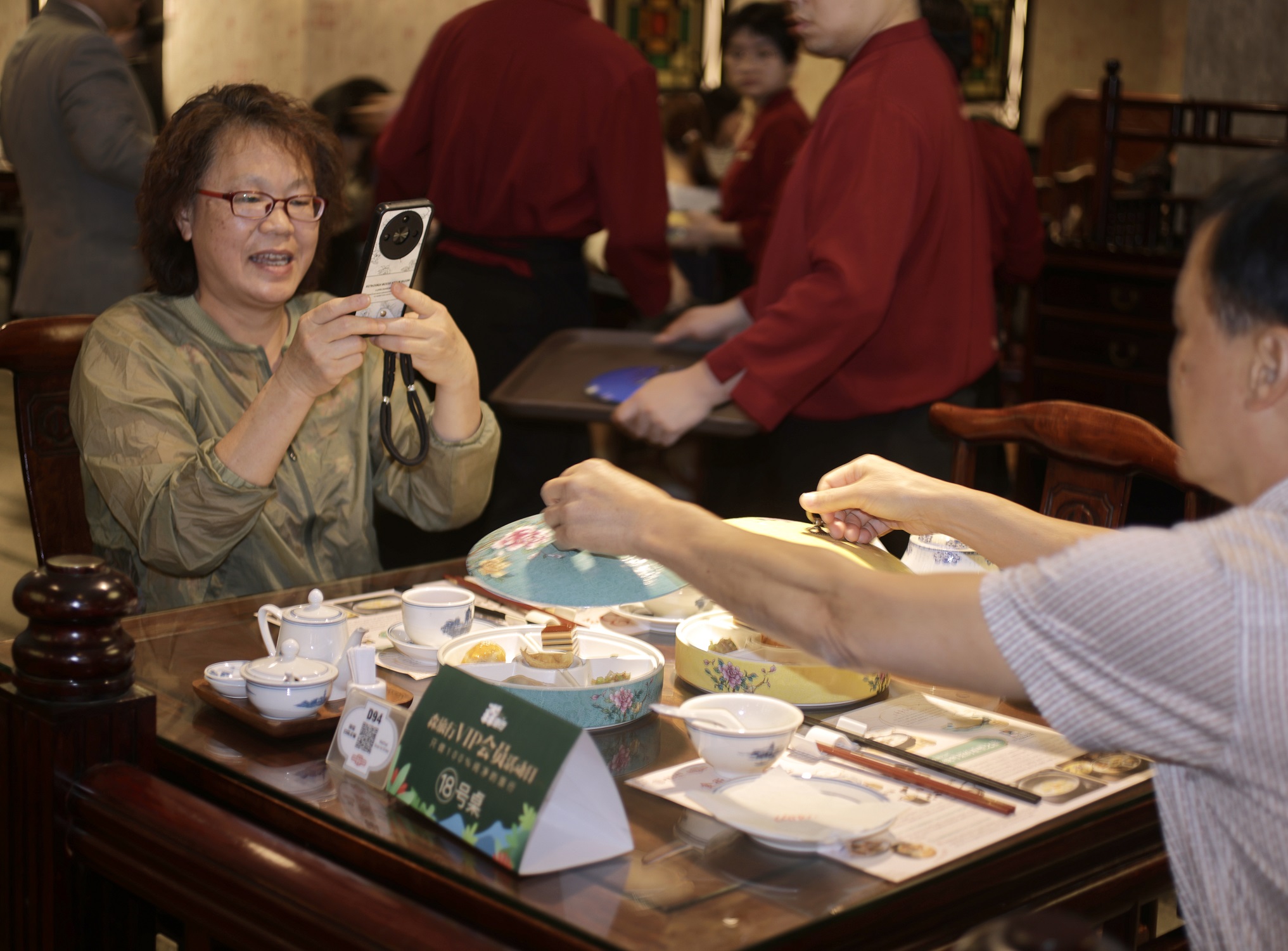 (在中国大酒店品味“消失的名菜”,团友们第一动作是先拍照打卡) 逆向深耕:在流量时代打捞值得慢品的历史之味 在追求速成与流量的当下,森旅行选择了回归经典与深度。活动现场品尝的“消失的名菜”,其灵感均源于严谨的历史文献考据。例如,“和顺锦盒”内荟萃皮薄馅靓的西施粉果、酥化甘香的非遗叉烧酥、寓意吉祥的锦卤云吞、蛋香浓郁的葱香麒麟蛋及融合风味的咖啡奶糕,一盒尽显广府点心工艺的时代风貌。 “复刻一道传统的非遗叉烧酥,远比制作当下流行的点心费时费力,”中国大酒店的点心师傅坦言,“但只有坚守这些传统工艺,才能让后人真切触摸到广州味道的根脉。”这番话道出了项目背后的匠心坚守。一位65岁的退休教师陈阿姨在品尝后动情地说:“这就是我小时候跟着外婆去‘大茶楼’吃的味道,几十年没尝过了,一口就把我拉回了童年。”这种强烈的情感共振,正是森旅行 “100% 纯净的旅行”理念的核心——不堆砌景点、不追求打卡,为长者提供健康价值与情感共鸣的深度旅行产品,让每一次体验都承载温度与记忆。 “森旅行的创新,让博物馆里的历史‘活’了起来——文物不再是玻璃柜里的展品,而是能通过一道菜、一次旅行被触摸、被感知的文化记忆。”广州博物馆代表评价道。中国大酒店代表亦表示:“作为承载广府集体记忆的老字号,我们很高兴能与森旅行携手,用匠心复刻老味道,让民国名菜成为连接过去与现在的味觉纽带,为广州建设国际消费中心城市注入文化动能。”