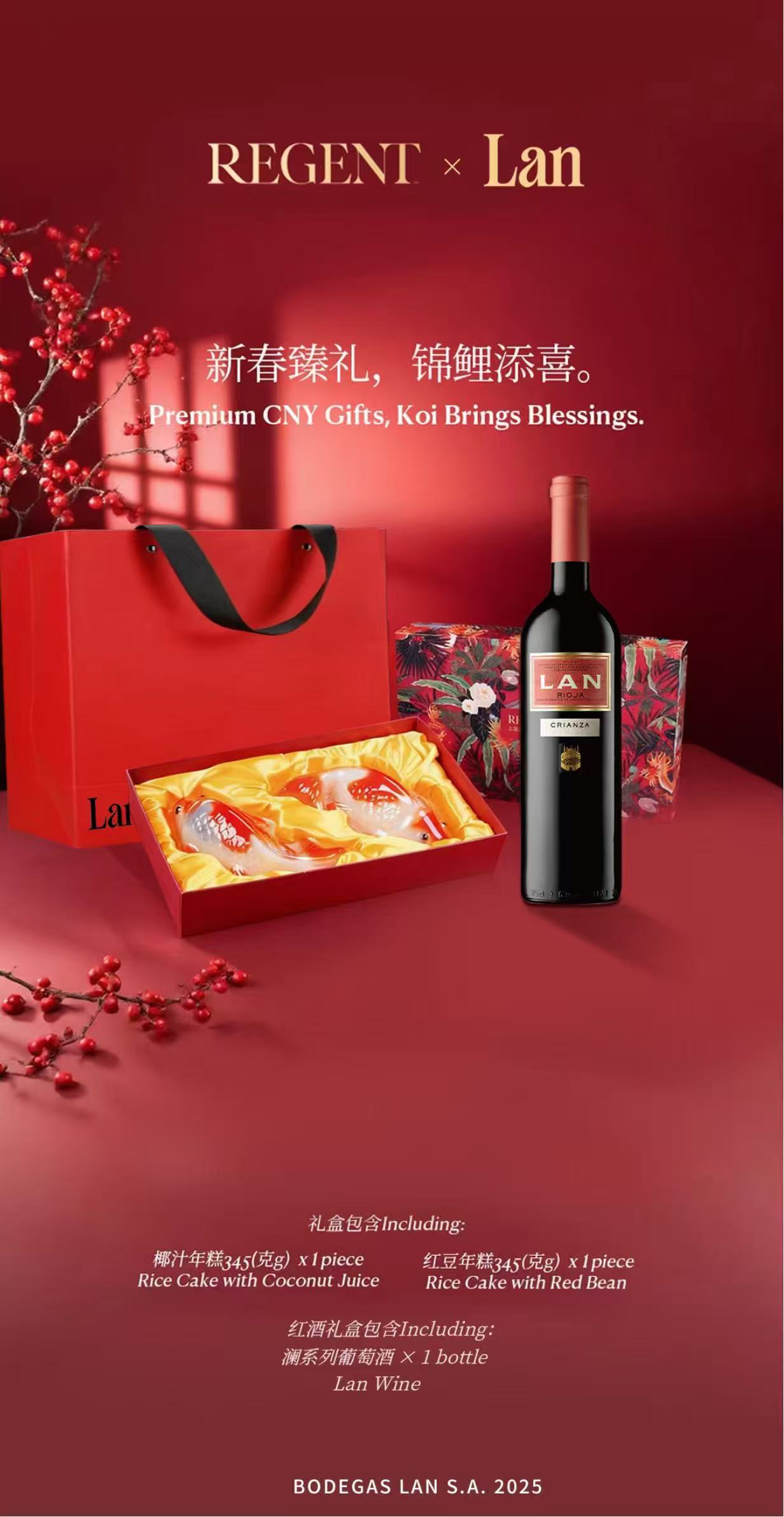 马年新春将至,LAN澜酒与丽晶酒店联名呈献“锦鲤贺岁”限定礼袋,内含酒店手作年糕与LAN澜酒甄选佳酿。锦鲤纹样跃然礼盒,寓意“鱼跃龙门,骏程万里”;LAN酒的醇厚丹魄,更添“马到功成”的吉庆。