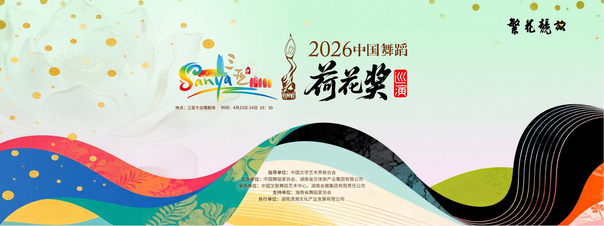 演出信息 演出名称:2026中国舞蹈荷花奖巡演.三亚站 演出地点:三亚千古情剧场 演出状态:首站已顺利落幕,后续城市巡演信息请关注官方公告 更多精彩剧照、幕后花絮及后续巡演安排,敬请关注官方平台发布。