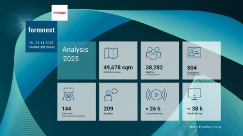 二、Formnext 2026:全球3D打印、增材制造的巅峰行业展会与未来风向标 时间:2026年11月17日-20日 地点:德国法兰克福展览中心 作为全球增材制造领域的年度风向标,Formnext法兰克福国际3D打印展览会已步入第二个十年阶段,Formnext 2026将继续承载产业期待,为行业呈现前沿创新与深度洞见。 回顾 Formnext 2025,展会交出了一份令人瞩目的成绩单:吸引接近 40,000 名专业观众,其中国际观众占比达 47%;汇聚了 804 家来自全球的参展企业,国际展商比例超过 61%,充分体现了展会的全球辐射力与产业整合能力。现场氛围积极热烈,从材料研发、设备制造、软件服务到终端应用,全产业链关键企业齐聚于此,共同呈现了增材制造从技术探索迈向规模化应用的最新进展。 在展会现场,来自全球的专业工程师、制造管理者与产业决策者,对展示的技术深度与行业价值给予了广泛认可。展商们围绕“材料-设备-软件-自动化”这一完整价值链,集中发布了一系列具有突破意义的新产品与新技术。无论是具备创新架构的增材制造系统,还是推动部件性能提升的新一代材料,亦或是覆盖设计、制造到后处理的全流程数字化解决方案,均体现出增材制造技术正不断朝着更高效率、更低成本、更广适用场景的方向稳步演进,为各行各业的制造升级提供有力支撑