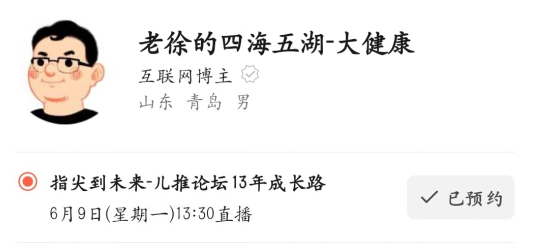 6 月 9 日 13:30 开播 | 视频号搜索@老徐的四海五湖 - 大健康