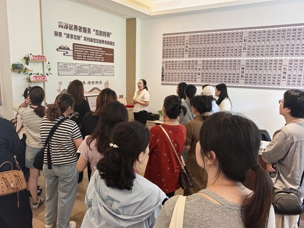 为持续优化区域养老服务体系建设,推动养老服务资源整合与服务能力提升,9月11日,南京市江北新区养老服务互助时间平台志愿者调研团共计40余人赴高淳区开展“凝聚合力破界提质,寻智共探养老新径”跨区域调研观摩活动。 调研团先后走访了高淳区东坝街道沛桥村养老服务中心、南京银发服务实践研学基地、高淳区养老服务指导中心及南京高堂和雅养老服务有限公司,深入考察了“3+2+1”农村互助养老模式、多元共建的银发经济实践平台、“睦邻点+养老互助平台”综合服务体系以及医养结合的三级养老机构运行机制,全面了解了高淳区在养老服务领域的创新举措与典型经验。