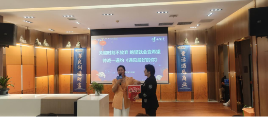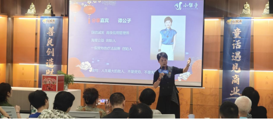三、分享故事 精彩动人 "遇见太奇妙,分享吐芬芳。"栏目进入第七期,在分享嘉宾这一环节,第七期的分享嘉宾呈现出"男女搭配,阴阳平衡,金句精彩,引人入胜"现场氛围。让遇见栏目的下半场,呈现出一派渐入佳境的状态。 "国投城发",海棠公益创始人"谭公子",个子不高,当她从听众席走向舞台的那一刹那! 台下的所有人眼前一亮,"谭公子"行走气势生辉,讲话语出惊人。仿佛身上带来一团浓浓火焰,一下子把会场点亮。她说,"我是一个女儿身,却有一颗男人心。""谭公子"已成为我的形象IP。 做地产的我曾经抑郁过一年。在那段日子里,生命跌到了低谷,夜不能寐,生不如死,度日如年,信念告诉我:"站起来,莫趴下"。"人生最大的敌人不是贫穷,失败,是内心的不燃烧"。心中一股强大的自愈力让我从抑郁中重新站起。 用健康的心态去抚慰那些失去健康的人们,成为激励我重新焕发斗志的力量源泉。 看到一批批地产大佬,有钱人,在健康面前一个个倒下,我的内心重新燃起一股火焰(发下大愿)我要用华夏优秀的传统文化、中医文化,非遗文化,与一群志同道合,有着共同信仰、使命的人,去帮助那些失去健康、失去财产的人,盘活资产,重拾健康。