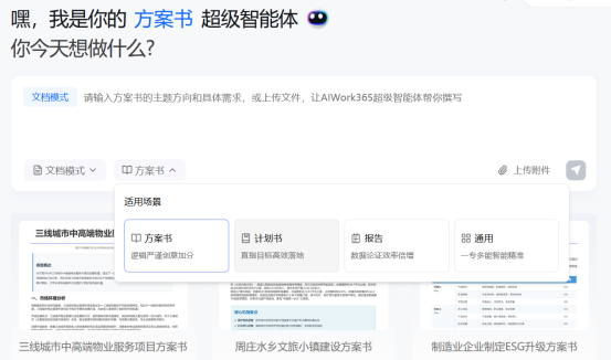AIWork365超级智能体,职场人的AI办公神器,一键搞定专业方案计划书与报告