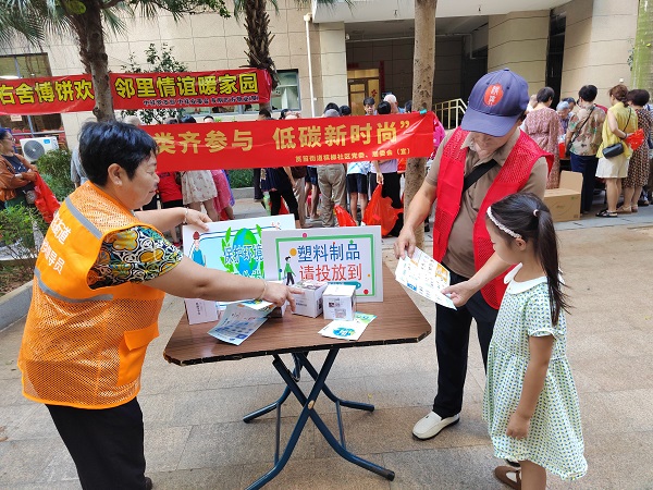 活动同时融入垃圾分类宣传环节。社区垃圾分类宣传志愿者积极向居民发放图文并茂的宣传手册,细致讲解低值可回收物回收利用的重要意义,引导居民从源头做好分类,推动资源循环利用。现场还设置了有奖问答环节,居民踊跃参与垃圾分类知识互动,正确回答问题的居民获得了精美小礼品。这种寓教于乐的方式,有效提升了居民对垃圾分类的认知与参与热情,让“绿色、低碳、环保”的理念深入人心。