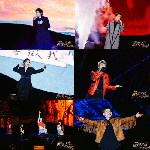 实力唱将,演绎音乐魅力 演唱会中,每位艺人都以独特的嗓音和极具感染力的舞台表现,展现了华语音乐的多样魅力。孙楠以标志性的高亢嗓音和饱满的情感,诠释了华语男声的磅礴力量;林志炫则以清亮嗓音和细腻的情感,营造出一种纯粹而高雅的氛围;何洁用真挚的嗓音讲述关于成长与爱的故事,打动了每一个人的心;黄品源的经典歌曲唤醒了无数人的青春往事,让人动容;温岚的歌声充满律动感,为夜色注入了一抹青春的活力;金志文则以深情与力量并存的演唱,将现场气氛一次次推向顶点。