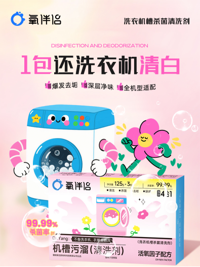 更重要的是,它将秋日洗衣过程转化为一种感官仪式:宽温激活剂加持下,40-50℃宽温水域即可激活,无需费力搓洗;浸泡时散发新风级自然氧香,海洋晨曦香型前调清新、中调舒爽、后调绵长——以自然香氛思路打造清洁体验,让秋日洗衣时间成为放松时刻。正如一位用户反馈,秋日午后看着衣物在泡泡中焕然一新,闻着自然氧香,疲惫也随之消散。 02 细分场景与专业背书:打造差异化信任体系 仅靠感官体验并不足以支撑红海突围。氧伴侣的另一增长逻辑在于通过精准切入细分场景与专业权威背书,构建差异化信任体系。 其另一王牌产品——洗衣机槽杀菌清洗剂“机槽污溜”便是典范。《上海预防医学杂志》数据显示,使用半年以上的洗衣机总大肠菌群检出率高达99%、霉菌检出率达60.2%,比马桶更脏。这一精准痛点被氧伴侣捕捉,机槽污溜主打99.99%杀菌率和99.67%除螨率。通过国家发明专利活性氧技术,产品遇水后能释放大量活氧分子,深入物品缝隙软化分解并剥离污渍,而非依赖化学腐蚀。适配全机型、单包定量包装等特点,让使用过程更加便捷。