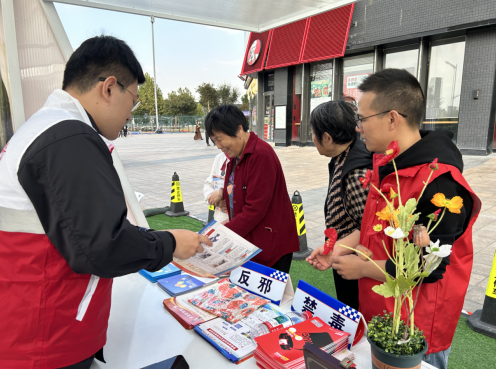 活动现场温馨有序,健康诊疗与平安宣传同步开展。心内科、神经内科、骨科等多科室专家坐诊,免费为老年人诊疗,医护人员还提供血压测量、报告解读服务,针对高血压、糖尿病、心脑血管疾病等老年常见病症,逐一解答疑问并给出健康指导。 平安宣传活动是本次活动的核心环节。街道平安法治办的工作人员通过展示样品、发放宣传手册以及现场讲解,以通俗易懂的语言介绍了毒品的种类、外观特征及其危害,尤其着重剖析了不法分子如何利用“保健品”和“特效药”来伪装毒品。此外,工作人员还进行了反诈骗宣传,揭露了针对老年人群体的新型诈骗手段,帮助老年人提高识别诈骗陷阱的能力;同时,我们还开展了反邪教宣传活动,旨在帮助老年人远离邪教,守护他们的晚年生活。 “在家门口就能看病、学禁毒知识,太实用了!”刚做完检查的封大爷,拿着诊疗建议单和禁毒手册,笑容满溢。活动中,工作人员还结合秋季养生、慢性病管理,提醒老人勿信不明“养生偏方”,避免误入涉毒圈套,传递“未病先防、防毒先行”理念。