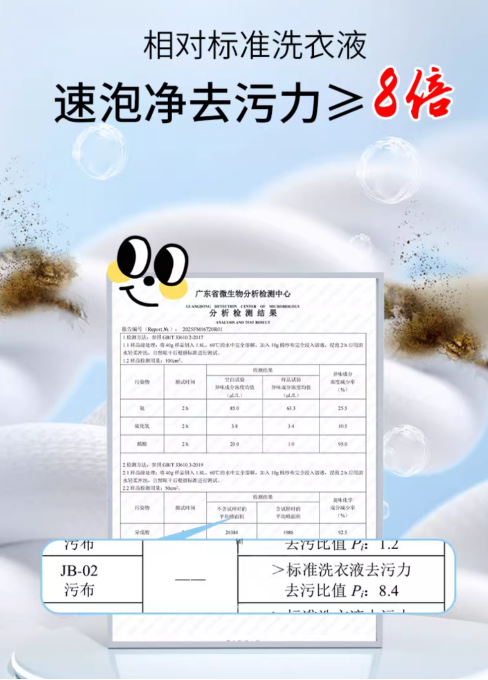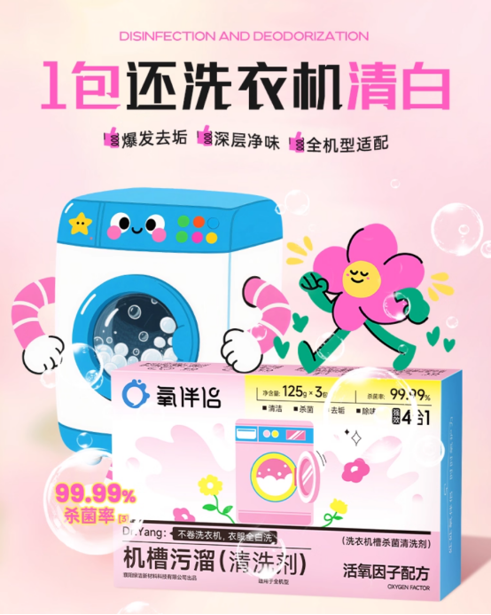 氧伴侣的核心产品完美诠释了其战略:新上市的“氧伴侣速泡净”针对衣物清洁,创新性地融合了活氧因子、表面活性剂和复合酶去渍因子,实现了对顽固污渍的靶向去除和高达99.9%的除菌率,同时强调其母婴级的安全温和。该产品凭借其“活氧爆净力”和“一罐净全屋”的特性,为消费者提供了全新的清洁体验。另一款重要产品“洗衣机槽杀菌清洁剂”则精准击中了“洗衣机二次污染”这一容易被忽视的健康盲区,以经权威认证的99.99%杀菌率和99.67%以上的除螨率,以及适配全机型、安全无腐蚀的便捷体验,成功将洗衣机槽清洁从一个可选动作变为家庭健康的必备环节。
