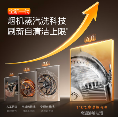 自动蒸汽洗2.0技术是美的小西梅油烟机的亮点所在,区别于普通水洗或人工拆洗,它利用110℃高温蒸汽溶解内部油垢,再通过高压冲洗和叶轮高速甩油,实现99.1%的洗净率。更重要的是,清洗过程全自动:累计使用7小时后,待机半小时即自动启动4+2清洁模式,即4分钟蒸汽洗+2分钟烘干,无需手动操作,家有老人也能轻松应对。