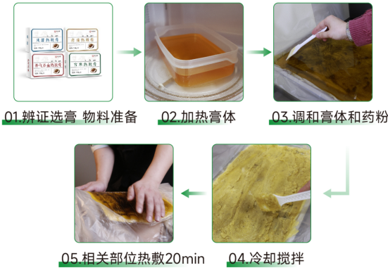 根据测评+专业辨证的结果,从草本配方敷膏里选适配款,侧重舒缓肌肉或改善寒凉,打破热敷千篇一律的局限。