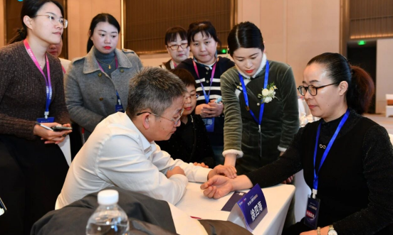 △ 梁子峰老师正在给参会老师把脉 △