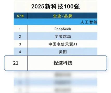 入选2025新科技100强 探迹AI智能体构建数字生产力新生态