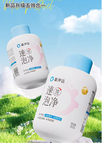 活氧清洁主要依靠使用过程中释放大量活氧因子,这些活氧因子不仅拥有卓越的物理去污能力,更能深入纤维缝隙瓦解顽固污渍,且过程天然环保,无有害残留。从此,“氧护力”成为品牌最鲜明的标签,氧伴侣也确立了自身“家居洁净全域氧护师”的独特角色,致力于为家庭、学校、医院乃至更广泛的场景提供一站式、安全高效且充满自然关怀的洁净解决方案。 这一战略选择在实战中得到了验证。氧伴侣清洁CP组合中的速泡净正是凭借其过碳酸钠升级配方,实现了与传统产品的差异化竞争,用活氧科技+感官设计的组合拳,成功打开了蓝海市场的大门。