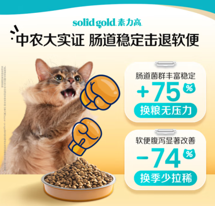 针对肠道健康,素力高专研“三重护肠体系”:通过添加专利益生菌调节肠道菌群平衡,改善消化功能;不饱和脂肪酸滋养肠粘膜,增强肠道免疫屏障,缓解换粮或换季带来的应激性软便;天然膳食纤维促进肠道蠕动,帮助排出代谢废物,持续减轻肠道压力。这套科学机制层层作用,不仅显著减少软便,更为猫咪建立稳定的消化环境,使营养摄入得以充分利用,为发腮增肥创造有利条件。