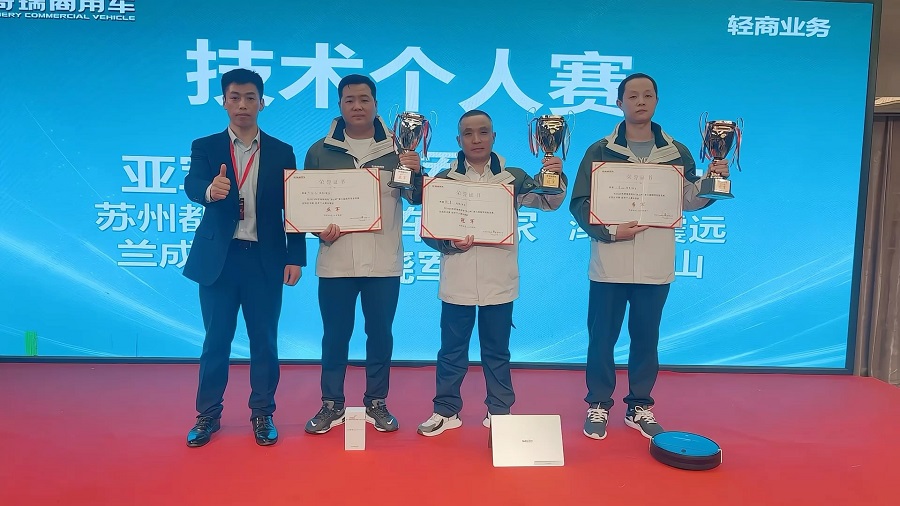 团体赛冠军 冠军的取得,只是服务的开始。比赛的终极目标,是为客户提供“高效、智能、贴心”服务。对于每一位选择新能源奇瑞商用车轻商的客户而言,“开心杯”意味着: 更快的秒级响应速度: 经过千锤百炼的服务团队,能以更高的效率诊断并解决车辆问题,最大限度减少客户的运营等待时间,多拉货,多赚钱; 更可靠的技术保障: 通过竞赛淬炼出的顶尖技能,确保每一次维修保养都精准、可靠,保障车辆出勤率和运营收益; 更安心的服务体验: 标准化的流程和温暖的服务态度,让客户在享受专业技术服务的同时,也能感受到奇瑞商用车轻商“开心服务”品牌带来的安心与舒心。 · 以赛促练 以练促优 引领行业发展 以赛促练,以练促优。第三届“开心杯”的帷幕虽已落下,但新能源奇瑞商用车对服务品质的追求永无止境。未来,我们将继续深化“开心服务”品牌内涵,持续打造一支技术过硬、服务贴心的一流售后团队,携手供应链伙伴,为全国客户提供超越期待的服务体验! 赋能行业,树立服务新标杆。随着新能源商用车普及率不断提升,售后服务已成为市场健康发展的关键一环。奇瑞商用车新能源轻商通过“开心杯”竞赛,持续输出高标准的技术规范和服务流程,为整个行业培养骨干力量,推动新能源商用车后市场服务体系的成熟与规范化发展; 赋能供应链,凝聚生态合力。本次大赛得到合肥阳光电动力、中创新航和苏州汇川等核心供应链伙伴的深度参与。从提供最新技术资料到派出专家联合命题,供应链的全程融入,标志着奇瑞商用车轻商业务正与合作伙伴携手,构建一个从生产制造到售后维保的“全生命周期”服务生态,共同为用户创造更大价值; 赋能社会,成就智慧物流。赋能绿色城配物流,新能源商用车的核心价值在于推动交通运输的绿色转型。而高效、可靠的售后服务,是保障每一辆新能源物流车、环卫车能够“跑得好、出勤高”的关键。我们通过锤炼服务铁军,间接为社会绿色低碳发展和城市智慧物流的顺畅运转提供坚实服务保障。