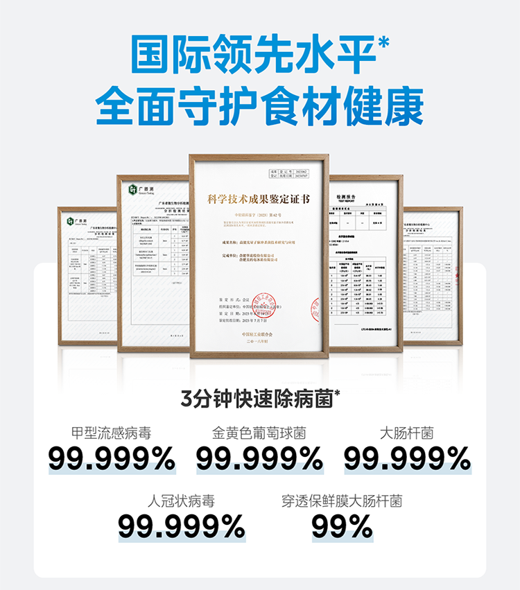 值得一提的是,这是行业唯一获得两项国际领先鉴定的净化科技,其背后是美的冰箱对中国家庭存储环境的深入研究。美的冰箱携手CICC(专业从事工业微生物菌种资源保藏管理与科技服务的国家级公益机构)建立了行业唯一的中国家庭菌群数据库,通过对不同地域、不同季节、不同饮食习惯下的家庭菌群的深入研究,从而针对性开发除菌技术,定制化解决中国家庭存储健康问题。 在熊墩墩Pro和Ultra版上,还可选配脉冲净化技术。该技术是行业唯一能穿透包装袋直达食材表面的净化科技,食材表面杀菌率达到99.999%,解决了常规冰箱产品“空气除菌”对实际食材除菌效果不够精准的深层痛点。