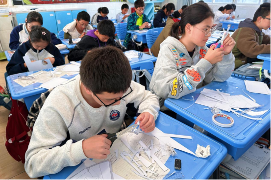 课程设计始终以“静安印迹”与“学生需求”为双轮驱动,既扎根特色本土文化土壤,又贴合不同年龄段学生的认知特点。针对不同年级的成长需求,课程梯度设计清晰。低年级以趣味体验为导向,开设简易拓印、剪纸等轻量化课程,用直观互动激发参与兴趣。高年级则以深度探究为目标,设置“苏河湾”“激光雕壳”等主题,引导学生结合静安本土资源开展自主探究,让实践从“动手体验”升级为“动脑思考”。课堂上,“激光雕刻会伤害眼睛吗?”“苏河湾的码头历史有多久?”“成为建筑师需要学哪些知识?”等问题层出不穷,好奇的种子正在同学们心中发芽。