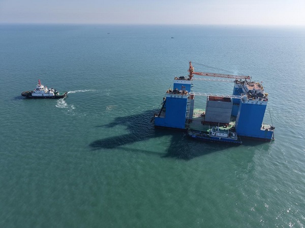 中交一航局防城港渔澫码头项目首座沉箱成功完成海上出运与安装