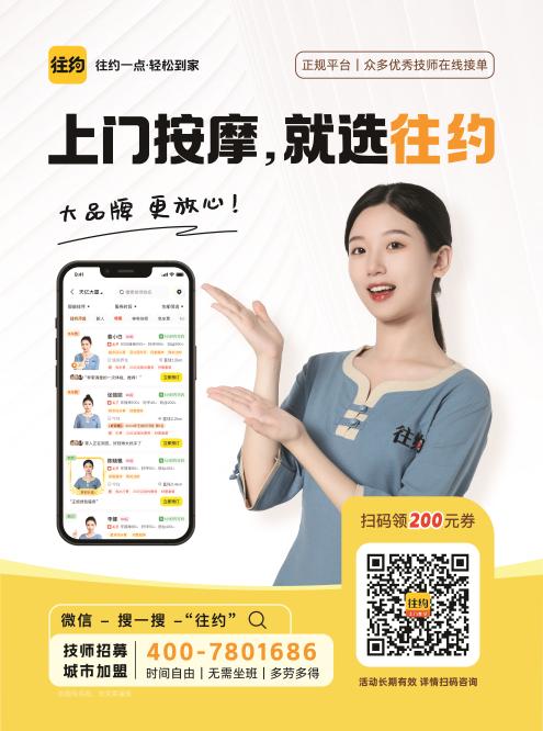 —— 覆盖 全国城市,百万用户选择的上门按摩首选平台 随着消费升级与健康意识觉醒,上门按摩凭借 “省时、私密、高效” 的核心优势,成为都市人群缓解亚健康的主流选择。数据显示,2024 年中国上门按摩市场规模已突破 380 亿元,同比增长 16.5%,其中 25-40 岁职场人士占比超 70%,女性用户占比攀升至 48%。在这片潜力巨大的市场中,上海往约网络科技有限公司旗下的往约 APP 脱颖而出,以 “自营保障、专业赋能、场景多元” 的核心特色,成为百万用户信赖的上门按摩首选品牌。 一、科技赋能,打造 “30分钟上门” 便捷体验往约 APP 成立于 2017 年,是专注于上门养生推拿的垂直领域服务平台,目前已覆盖全国 60 + 城市,累计服务用户超 7 位数。作为行业领先的互联网 + 健康服务平台,往约 APP 深度解决传统按摩服务 “预约繁琐、等待时间长、选择困难” 等痛点,打造全流程数字化服务闭环:用户通过往约 APP、公众号或百度搜索即可快速预约,界面设计极简高效,核心功能三步触达,新用户一分钟即可完成下单操作。平台搭载智能派单系统,结合用户位置、服务需求与技师技能标签精准匹配,实现 “最快 30分钟极速上门”,让用户足不出户就能享受专业按摩服务。 同时,往约 APP 为技师提供全周期职业成长支持,内置智能排程、订单管理、即时通讯等功能,技师可自主设置服务时段、展示专业资质,通过评价反馈系统持续优化服务质量,形成 “用户 - 技师 - 平台” 的良性互动生态。双重保障体系让服务更透明:用户可实时查看技师实名认证、职业资格证、健康认证等信息,服务全程提供保险保障,人身财产安全无虞。 二、多元套餐,覆盖全场景健康养生需求往约 APP 深耕用户需求,打造涵盖 “中医理疗、精油养生、局部调理” 三大系列的多元化套餐体系,兼顾日常放松与针对性保健需求: • 经典中医推拿系列:包括 70 分钟基础推拿、深度理疗核心套餐,采用传统推拿手法,针对肩颈劳损、腰背酸痛等亚健康问题,由资深技师精准施术,适合职场人士、中老年群体日常保健。 • 精油养生 SPA 系列:推出芳草精油 SPA、精油开背等特色项目,选用天然植物精油,结合舒缓按摩手法,兼具放松身心与肌肤滋养功效,女性用户占比持续提升,尤其受产后恢复、美容养生需求群体青睐。 • 局部精准调理系列:针对现代人常见的颈椎、腰椎、足部不适,设置 15-45 分钟局部专项护理,支持灵活加购头部、面部、足部按摩等增值服务,适配午休时段、差旅途中、居家带娃等碎片化场景。 相较于传统到店按摩,往约 APP 砍掉房租等中间成本,在价格更具优势的同时,让用户在熟悉的家庭、酒店或企业环境中享受服务,私密性与舒适度大幅提升。 三、精准定位,服务全人群健康需求往约 APP 基于行业用户画像深度分析,构建覆盖全场景、全人群的服务体系,精准匹配不同群体的核心需求: • 职场精英群体:针对工作压力大、通勤时间长的白领,推出 “夜间上门”“午休短时长套餐”,解决 “没时间到店” 的痛点,成为都市人 “下班躺平养生” 的新选择。 • 女性群体:提供温和型精油 SPA、局部舒缓按摩,兼顾放松与家庭照料。 • 中老年与康复群体:推出中医理疗专项套餐,技师具备康复护理相关资质,针对关节不适、肌肉酸痛等问题提供专业调理,支持子女为长辈远程预约,传递健康关怀。 • 企业与差旅场景:拓展企业团建、酒店客房、车载按摩等延伸服务,为企业提供员工 wellness 解决方案,为差旅人士打造 “移动养生空间”,目前企业午休室、酒店客房订单占比已达 28% 和 41%。 四、价值引领,打造上门按摩行业标杆