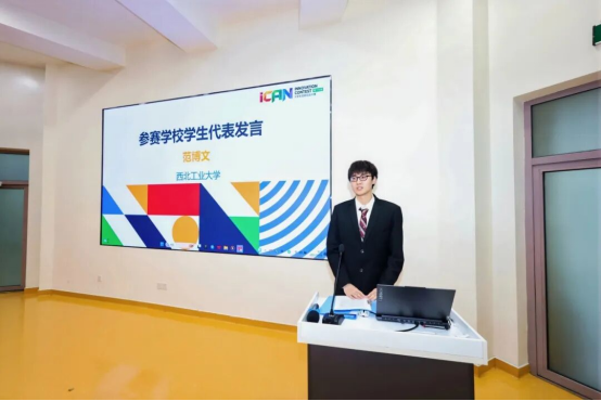 西安欧亚学院信息工程学院院长刘欣副教授代表承办单位致辞。他指出,iCAN 大赛自创办以来,始终以“自信、坚持、梦想”为内核,已成长为全国高校最具影响力的创新创业赛事;此次落地欧亚,既是荣耀,更是责任。随后,他向所有参赛团队送上祝福。 iCAN大赛西北赛区负责人、西北工业大学机电学院教授何洋介绍了西北赛区的赛事情况,并对iCAN大赛鼓励原始创新、培养创新人才的竞赛精神进行了深刻解读;西北工业大学学生范博文代表全体参赛选手发言。他让大家跟随一条“仿生鱼”潜入创新深海:凌晨四点的键盘声、零件散落的实验桌、赛程焦灼的对接现场……他用亲身经历讲述如何把“自信、坚持、梦想”六个字一点点敲进骨血,让在场师生听见青春与创意同频的心跳。