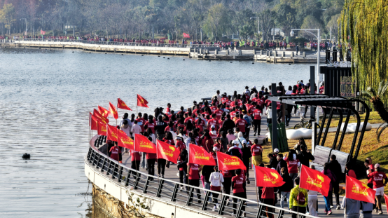 12月14日上午,深冬的晨曦映照在美丽的南湖之滨,“薪火传承·中国健康跑”岳阳·南湖站活动在岳阳市南湖新区新时代文明实践广场(南湖广场)活力开跑。三千名跑步爱好者齐聚于此,用奔跑的脚步感受湖光山色,以健康的方式传承红色薪火,共同演绎了一场融体育、健康、文化与红色教育于一体的全民健身盛会。