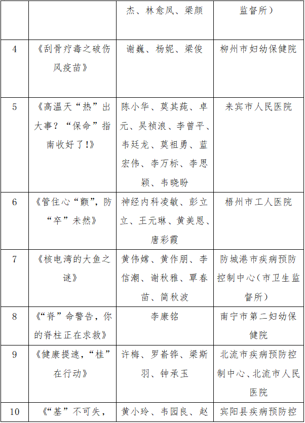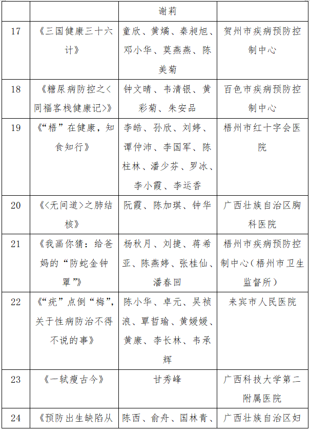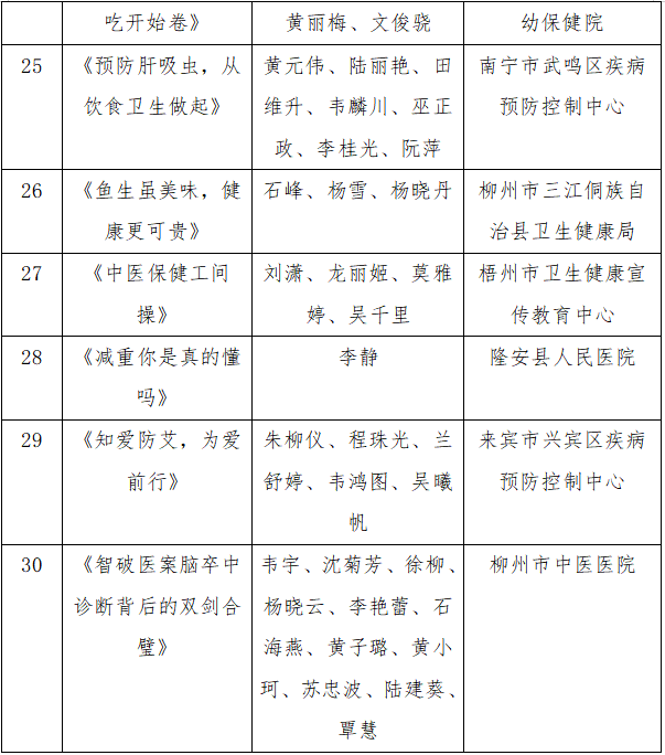 2025年广西健康教育系统健康科普视频征集展播活动入围作品名单