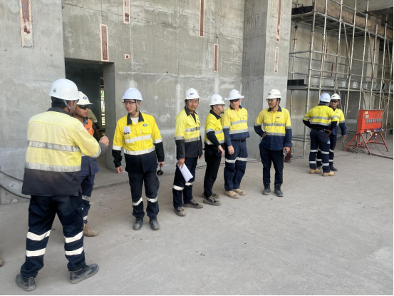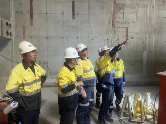 该基础工程作为翻车机房核心承载结构,涵盖钢筋绑扎、模板安装、混凝土浇筑、预埋螺栓定位等关键工序。施工过程中,项目部面对海外施工环境复杂、技术要求严苛等挑战,严格遵循中国规范和标准,对接国际标准,创新采用"精准测量+分层捣实"施工工艺,对预埋螺栓中心距、基础平面度等关键指标实行全程动态监控,确保基础坐标偏差、标高误差等核心参数均控制在允许范围之内。