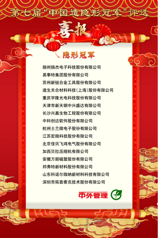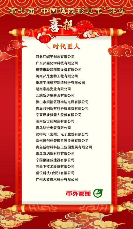 第七届“中国造隐形冠军”闪耀亮出 本届大会上,第七届“中国造隐形冠军”评选榜单在闪耀的聚光灯下隆重揭晓。此前,经过20位国内外顶级企业实战派专家、著名商学院院长、投资机构、媒体等多方严谨细致的评定,背对背、优选优的评审投票,16家“中国造隐形冠军”和20家“时代匠人”最终成功胜出,他们在各自领域内均展现出卓越实力与独特优势,堪称行业典范。