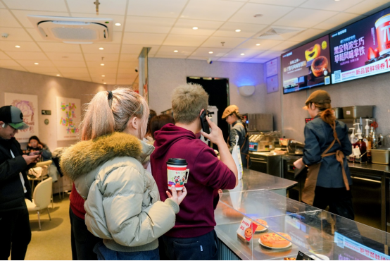 揭幕当日,不少消费者刚走进门店便被这一特色展示柜吸引,年轻情侣举着刚兑换的热拿铁,对着展示柜摆出俏皮姿势拍照;带娃的家长则牵着孩子,借着文创产品向孩子讲解成都非遗文化;还有消费者在展示柜前驻足挑选后,转身点单搭配联名套餐,沉浸式感受“咖啡+文创”的独特魅力。