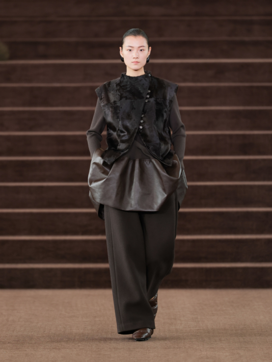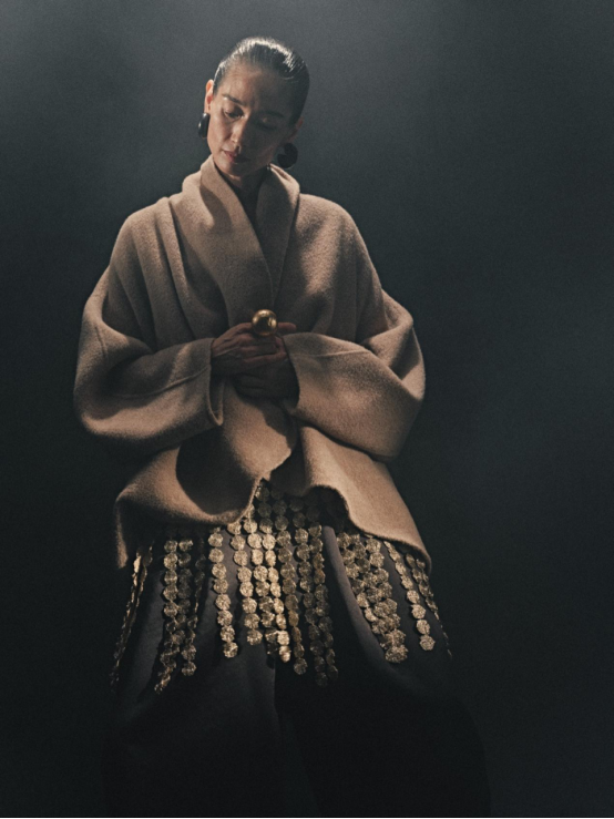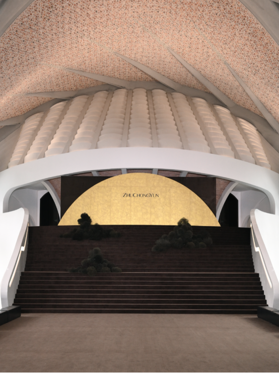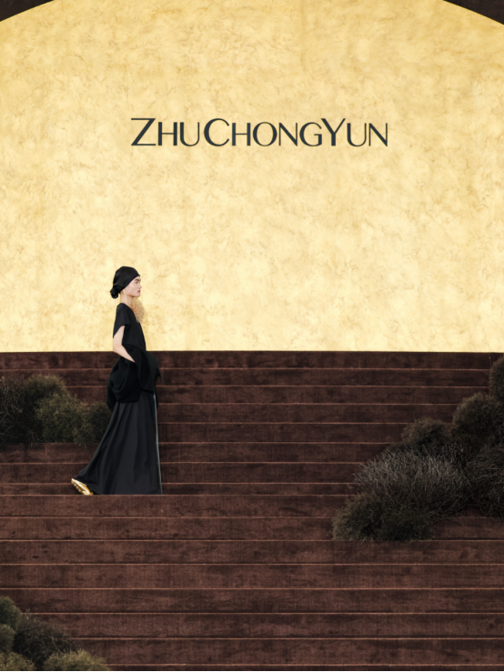 月亮晦朔弦望,周而复始,揭示出天地长久,久在循环不息。可贵的不是静态的永生,而是在不可阻挡的周期变化中延续内核。禅宗参透“水中月非月入水”,因此水虽流动,月自不移。便是身可入局,但高悬于心的价值不改。当自然的智慧照见人心的定力,关于「长久」的东方哲思,在高频善变的当下有如明灯。 而「长久」一词之于ZHUCHONGYUN,又是多出一分含义的。一直以来,品牌以东方意境为宗,融入自然、艺术和哲学的创造灵感,带着对中西审美之间的破立关系的集大成思考,去写一个名为“大美不言,极简东方”的时装故事。从对逍遥哲思的解读,到对非遗工艺的转译,「长久」心愿贯穿始终,它力图重塑的不仅是服装的周期,更是文化的传承。 品牌深知,“月形虽变,本体不改”,东方文化的穿透力,能在不同时代呈现新的表达,也正因如此才得以长续。通过时装创意去讲述东方的过程,既是为当代女性披一身自在风骨,也是为东方之韵,在时间的川河中放一叶不倾的渡筏。 人|之衣 赤陶棕色的大地,半轮巨大的金月停在地平线上,几株暗绿色的植物显出了剪影,一个静谧冬夜即将到来。