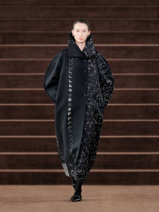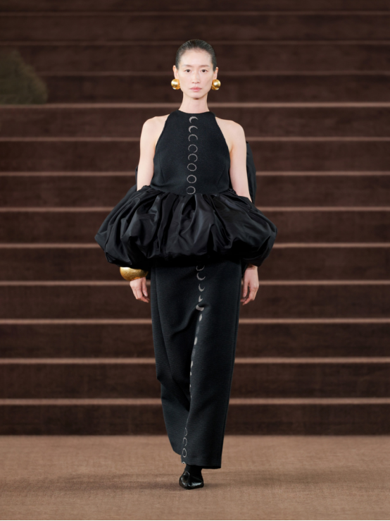 ZHUCHONGYUN 二〇二五 冬季发布现场,正是以月的不同状态为线索,构筑出五个相互映照的空间。 除「秀场·映月」外,「影人论坛·指月」联动权威媒体《T》中文版策划“亚太女性影人对话”,期间特邀许鞍华、海清等国际知名导演、艺人及电影从业者,分享“共此时”的东方议题。「艺术藏馆·月心」汇聚朱崇恽女士收藏的多件当代艺术作品,它们既是审美的选择,也是心灵的投射。「高定长廊·留月」回溯品牌历年代表性高定作品及苗·高定系列作品,记录品牌如何在工艺、廓形与面料创新上持续探索,让岁月在时装中驻留。「新品展厅·月生」展示ZHUCHONGYUN 2025冬季系列新品。 不同的场域中,各个行业的女性聚集此刻,分享创作的心得和生命的经验。她们共感同一轮心月,照出彼此之间的相似性。也许每个人的手摊开,握着的都是一枚不同阶段的月亮,有人在一线光亮中看到久违的勇气,有人将未竟之缺化为下一次圆满。但无论如何,月会指路,路会长久。 我们仍将从一个月亮,走向另一个月亮。从古时月走向今日月,从天边月走向心中月。 在「但愿人长久」的愿望中,ZHUCHONGYUN把服装变作了一种持久的力量,于流动不息的世界里,为穿着者提供内在的安定与外在的松弛,也为文化奉上延续的轻舟。 离开秀场,身边衣如天上月,一道相随驰,永筑东方女性情感与精神的维系。(作者:徐子深)