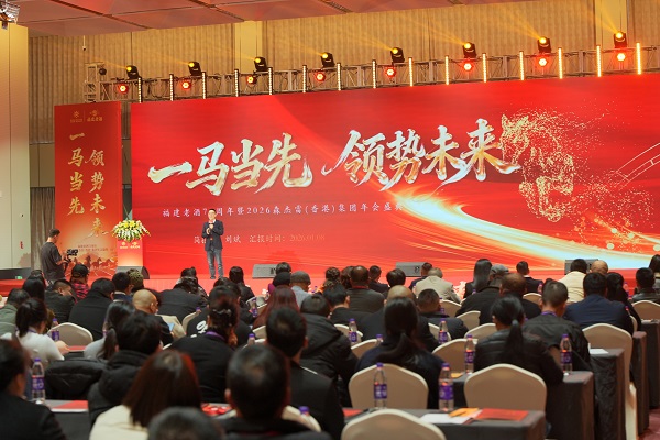 闽江潮涌,见证荣耀时刻;榕城冬如春,共绘未来宏图。在温暖而充满希望的新春氛围中,主题为“一马当先,领势未来”的福建老酒71周年暨2026森杰雷(香港)集团年会盛典,于2026年1月8日在福建福州隆重举行并圆满落下帷幕。本次盛会不仅是中华老字号“鼓山-福建老酒”传承七十一载的辉煌庆典,更是其母公司——森杰雷(香港)集团首次以崭新形象正式面向公众、合作伙伴及全体员工的重要亮相。集团内外重要领导、员工代表、战略合作伙伴及各界嘉宾齐聚一堂,共同回顾非凡历程,擘画发展蓝图,凝聚奋进力量。