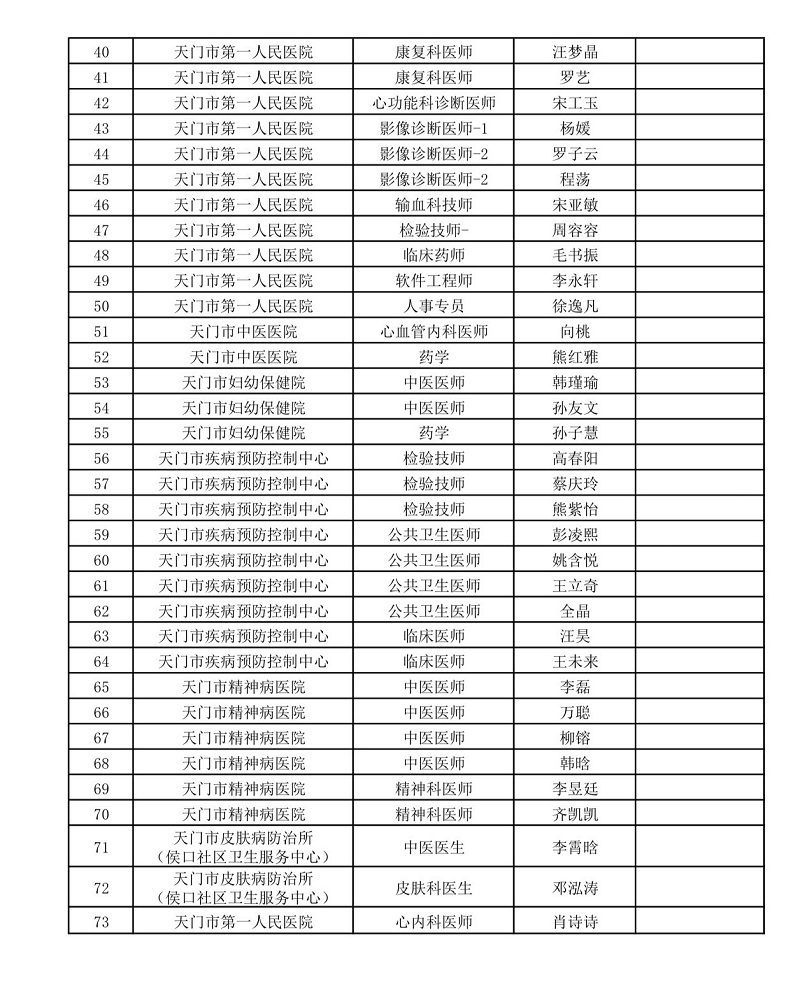 根据《2025年天门市卫健系统所属事业单位人才引进公告》的相关规定,我们现将李玉婷等拟聘用人员的名单(详见附件)进行公示,公示期限为5个工作日,即从2026年1月12日至2026年1月17日。在公示期间,若您对拟聘人员有异议,请向市卫健委人事科反映。