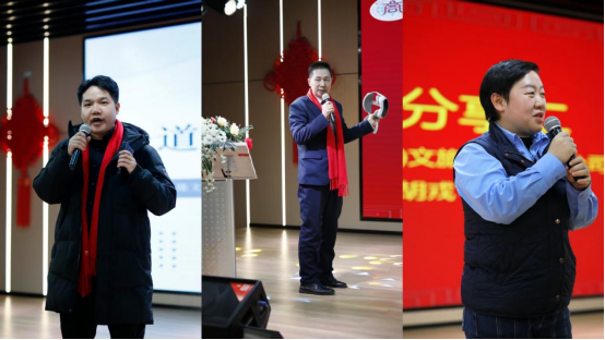 团拜会中,几位商会会员的分享也竞相绽放,来自夏飞AR高科技产品的演示,来自众道睿信的企业健康管理的财税服务;来自青绿数智的胡戎的分享,他们的故事里,有创业初期的艰难求索,有产业转型的毅然决然,更有对文化事业的赤诚热爱。那些藏在岁月里的坚守与执着,那些在困境中绽放的希望之光,深深打动了在场的每一个人,引发了强烈的情感共鸣,也让大家更加坚信,只要心怀热爱、勇毅前行,便没有跨不过的坎,没有实现不了的梦想。