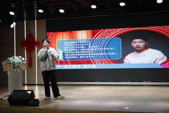 紧接着,专注于乡村振兴与园林景观领域的潘宇鑫登台分享。他从乡村的沃土中走来,带着对自然的热爱与对美好生活的向往,深耕园林景观行业,从让百姓享受园林带来的便利,到助力城市美学的升级换代,他用匠心勾勒着城市与乡村的美好画卷。“园林不仅是风景,更是一种生活态度,是人与自然和谐共生的见证。”潘宇鑫说道。他的分享,充满了对乡村振兴的执着与对城市美学的追求,他用自己的行动,让更多人感受到园林景观的魅力,也为乡村振兴注入了新的活力。