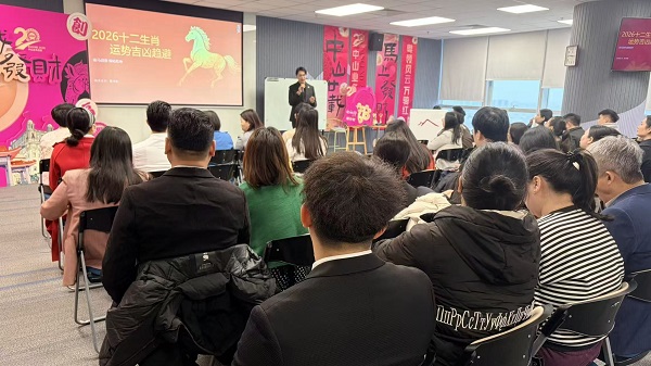 讲座于中山友邦高端商务会议中心举行,现场气氛热烈,座无虚席。陈靖韬先生凭借其多年对易学、生肖文化的深入研究,结合2026年(农历丙午马年)的年度五行气场与流年趋势,系统剖析了十二生肖在新一年中可能面临的整体运程、机遇挑战,并就事业、财运、健康、情感等方面提供了富有洞见的分析与建议。讲解过程引经据典,同时贴近现代生活与商业环境,强调了“知势而为,顺势而行”的积极规划理念,引导大家以更开阔的视角和积极的心态迎接新年。