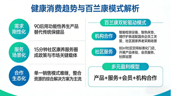 对于想要投身此领域的创业者而言,养生馆怎么开最好?百兰康提供的是一套经过验证的养生馆开店流程和规划。从前期科学的选址评估,到养生馆装修风格的标准化设计,再到开业前的系统培训与营销策划,品牌全程赋能,手把手教会合作伙伴养生馆怎么做才赚钱。其“整店输出”模式覆盖投资、产品、运营、服务全链路,让即使没有经验的创业者也能快速上手,解决养生馆怎么开的初期迷茫。 当前,健康消费呈现出三大显著趋势:一是需求刚性化,多数90后已开始使用功能性养生产品替代传统保健品;二是服务场景化,“15分钟社区康养服务圈”成为政策引导与市场落地的关键载体;三是合作生态化,单一产品销售模式难以为继,整合资源、打通B端与C端的综合解决方案成为主流。百兰康精准把握这一时代脉搏,创新推出“机构合作+社区服务”双轮驱动模式。一方面,其智能检测设备、智热床垫、理疗护具等产品已适配国央企员工关爱、社区居家养老等机构采购场景;另一方面,通过标准化门店模型,支持合作经营伙伴在80㎡左右的社区空间内,高效开展产品体验、会员服务与社群运营,实现轻资产启动与稳定收益。这从根本上回答了养生馆靠什么赚钱——不仅是产品销售,更是“产品+服务+会员+机构合作”的多元盈利模型。