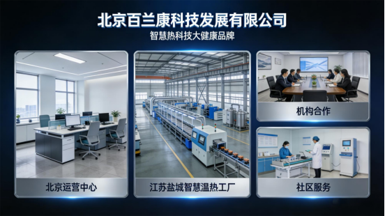北京百兰康科技发展有限公司是聚焦“智慧热科技”融合创新的大健康品牌,由袁永平创立运营,深耕温热健康细分领域多年。品牌秉持“用智慧热科技,助力国人健康”的核心理念,践行“热血、热爱、热心、热诚”的经营准则,致力于推动传统温热养生与现代科技深度融合,构建“检辨调评管”五位一体健康服务体系,为大众提供智能化、精准化的温热康养产品与服务。经过多年发展,百兰康已完成“研发-生产-运营”全产业链布局,在北京设立运营中心,在江苏盐城建成智慧温热工厂,并形成“机构合作+社区服务”双场景运营模式,同时,品牌积极推动智慧热养非药物康养标准化进程,成为智慧热康养领域的标杆品牌之一。