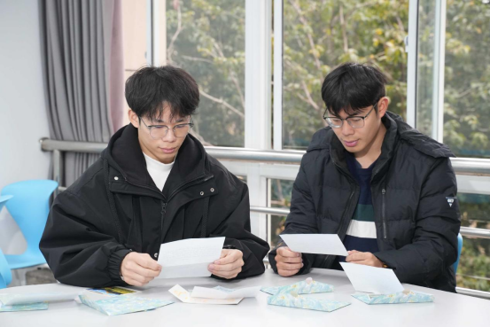 研究生党员志愿者正在看信 信的背后,是一群学生党员持续一学期的无声奉献。他们从自身紧张的研究与课业中挤出时间,每周为预科班的同学开设数学辅导课。在他们的帮助下,预科生们从迷茫走向清晰,耐心的讲解如春风化雨,让抽象的符号变得可亲。正如一位预科生所感慨的:“现在,微积分不再让人惧怕。” 六封手写信,承载的是一段持续的接力 这项温暖的学业帮扶,始于每一年郑重的“牵挂”。 “每学年开学,和预科生们的学业座谈会,是我日程本上必定标记的重要事项。”数据科学学院教工第四党支部书记王毅老师说道,“我们支部有援疆支教的传统,三位党员教师曾四度赴阿克苏。所以自从担任支部书记,我就告诉自己,这份情谊,我们要在校园里接续下去,把它变成一种更日常、更持久的责任。” 对此,学校“繁星花”民族团结工作室的阿尔帕提古丽·斯马义老师感受颇深。“数科学院每年的座谈会邀约,比杭州的秋天来得还准时。他们不只是听听困难,而是每年都在优化帮扶方式。”她细数道,“从一开始的期末集中答疑,发展到师生党支部结对,全程轮班辅导。今年更是升级了——由研究生党员们成立专项小组,针对预科生的薄弱点,‘小班化’精讲。这份坚持,让人感动。”