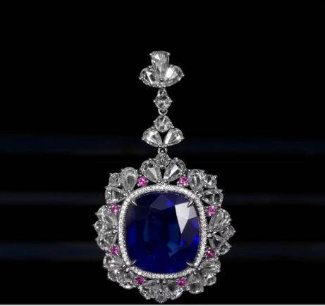 每一件首饰都是对生命美好的执着。这次与霍莱斯女士的合作,是欧洲艺术与东方匠心的深度对话。既致敬美第奇家族的文艺复兴遗产,又融入现代东方审美。例如,系列中的斯里兰卡矢车菊蓝宝石吊坠,以16.99克拉梨形切割主石为核心,其色调如斯里兰卡雨后初晴的天空,未经高温优化的天然“无烧”蓝宝石,保留了最原始的矿物美感。吊坠周围镶嵌的21粒梨形玫瑰切割钻石(3.49克拉)与10粒玫瑰切割钻石(0.58克拉),以渐变色调点缀,既中和了蓝宝石的深邃,又增添了女性化的柔美。当霍莱斯在舞台上旋转时,吊坠的流苏设计随风轻舞,钻石的光芒与蓝宝石的光泽交织,形成如矢车菊绽放般的动态美感。