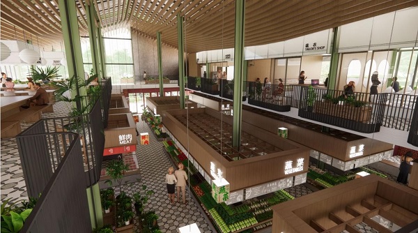 值得一提的是,这里的商业街区采用模块化摊位设计,实现空间功能的灵活切换:白天为熙攘的智慧市集,夜晚可转变为休闲社交空间。2.0 版三角埕的农贸市场,不仅支持食材溯源,提升消费透明度,还围绕居民日常生活需求,配备社区食堂、便民维修、亲子活动区等功能设施,下楼即可享受便捷服务。入夜后,摊位通过快速切换,化身为“烟火夜市”,进一步丰富夜间生活体验。项目整体致力于构建一个集社交互动、休闲娱乐与文化体验于一体的新型生活空间,打造漳州独具特色的创新型烟火市集,为区域商业注入新的活力。