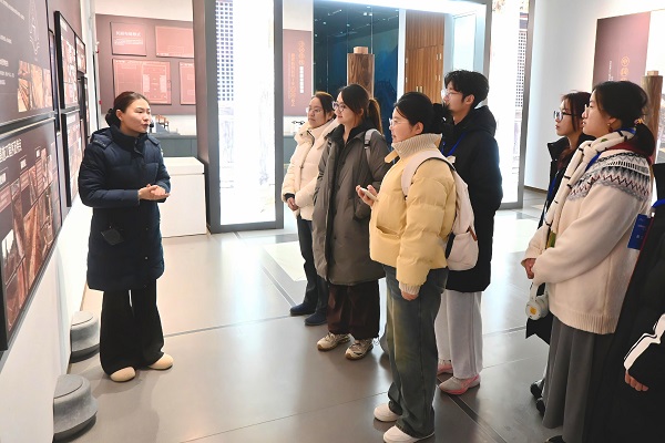 图3 ,实践团调研黄山非物质文化遗产馆 在屯溪老街与徽艺小镇,成员深度对话非遗传承人,对徽州歙砚、徽墨、沉香等6个非遗传承项目进行实地调研,于交流间读懂传统技艺所承载的坚守与温度;胡开文墨厂的古色古香,交织着点烟、和胶、描金、制墨、晾墨等十二道古法工序,让成员们于一捧一揉之间深刻感悟工匠精神。