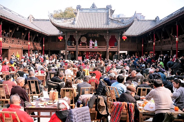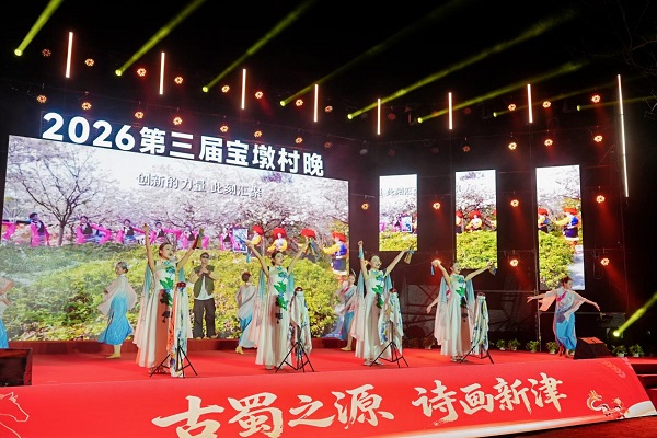 二、场景联动,文商农旅体促进消费 活动以文化惠民带动消费升温,在深入村(社区)广场的同时,进一步将地点拓展至景区景点、商圈街区等空间,推动文艺演出与非遗体验、年货集市、景区活动、趣味体育等联动,构建起文商农旅体深度融合的生动图景。 从宝墩遗址的特色村晚,到街头巷尾的艺人弹唱,从天府农博园的连续演出,到五津廊桥的汉服巡游,一系列惠民演出让优质文化资源直达基层、浸润人心。其中,老码头除夕夜的综合演出已成为新津老百姓专属的“文化年夜饭”,吸引了数千人欢聚一堂、守岁迎新;纯阳观、宝墩遗址、三渡水广场等点位同样场场火热。大家在看表演、逛市集、品美食、赏年俗中,沉浸式感受浓郁的新春氛围,更有效激发了新津春节期间的消费活力,带动活动周边餐饮、零售、文创等消费增长显著。