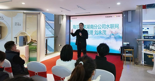 3月7日,卡萨帝热水器净水新品发布会在长沙苏宁易购五一广场店盛大启幕,本次发布会以“AI润山河 非遗守护之旅”为主题,重磅推出卡萨帝桃花水热水器PROMAX5、一级能效燃气热水器CV10及卡萨帝净水机黄金矿泉·凉白开等多款新品,同时携手湖南苏宁易购开启“全屋用水健康焕新节” 为湖南的消费者带来科技与美学兼具的用水解决方案。 领导致辞:共话行业新趋势 活动伊始,海尔智家湖南分公司水联网产业总经理刘永茂先生登台致辞。他表示,随着消费升级,用户对家庭用水的需求已从“满足基础”转向“健康、舒适、智能”的多元体验。卡萨帝热水器净水将持续以科技为驱动,通过无冷凝水一级能效、水晶胆等核心技术,为用户打造“健康舒适用水”的品质生活。
