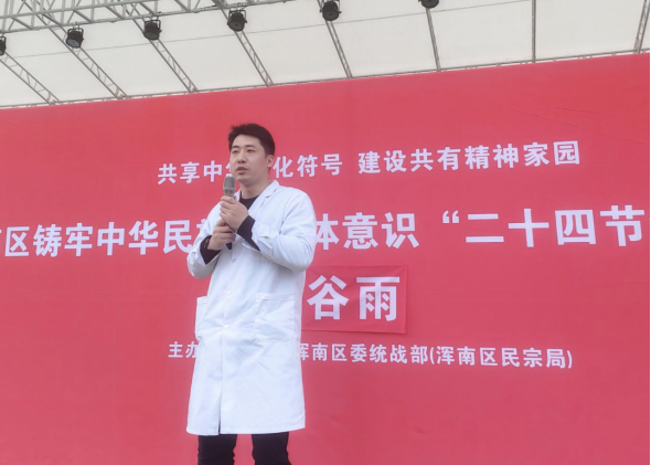 (3)响应统战号召:共筑“二十四节气”健康文化 积极参与中共浑南区委统战部指导的“铸牢中华民族共同体意识二十四节气共享会”活动,全年协同举办 24场“二十四节气”主题公益服务。 活动中,廖尖兵博士亲自带队并担任主讲人,围绕二十四节气民俗文化与健康养生知识开展系列科普宣讲。他结合专业,深入浅出地讲解节气文化与中医养生智慧,并在讲座后安排健康咨询环节,通过脉诊、体质辨识等方法,为现场群众提供个性化健康指导。冬至期间,活动发放“三九贴”体验邀请函200份,让参与群众亲身体验中医药保健效果,进一步感受中华优秀传统文化魅力,有效增强了群众对民族文化的认同感。